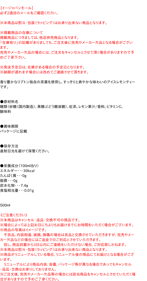 サントリーリプトン リモーネ500ml ×24個 はコチラ >>【イージャパンショッピングモール】内のみのお買い物は、送料一律でどれだけ買っても同梱する事が出来ます。